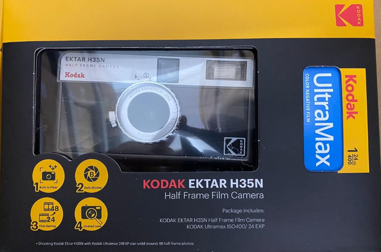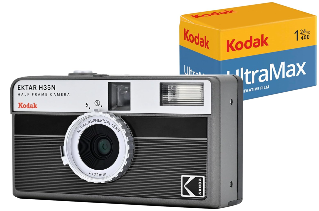 KODAK EKTAR H35N Half Frame Film Camera Bundle with Kodak Ultramax 400/24EXP 35mm Roll Film