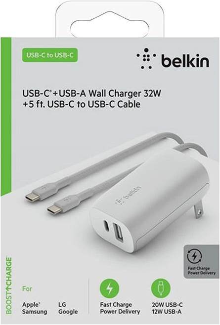 Belkin USB-C Wall Charger 32W PD with 20W USB C & 12W USB A Ports